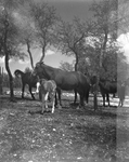 Blossom Time, one of the Hankins brood mares, is shown here with a foal in a pasture near the ranch house. Published in Fort Worth Star-Telegram evening edition May 1952.