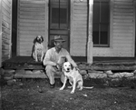 One of Olleon Carrell's favorite sursuits is hunting, with his two pointers, Lady and Queen. Published in Fort Worth Star-Telegram evening edition May 1952.