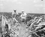 Burk and McCullough are shown here looking at the weeds the day after spraying. Immediate effects of the use of the herbicide are easily apparent.