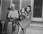Mr. and Mrs. Barney Groves and their young son, David, on the front porch of their farm home in the Rumle community, Lampasas County.