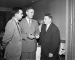 Clarence Kraft, holder of the all-time Texas League record of 55 home runs in one season, visits with present Cat manager, Bobby Bragan, left and Branch Rickey Jr. Kraft, who made his record while with the Cats in 1924.