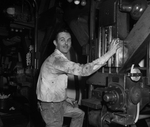 Chief Tomahawk Wenger, "The wild Osage from way out yonder" is shown working in the pressroom.