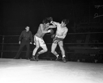 Bobby Agee, right, and Emiliano Rosalos, if you can't beat 'em, join 'em. There is a referee in the ring, observing the match. Photo was taken January 15, 1953.