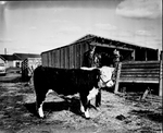 Jackie Walser, Electra, Texas Future Farmer, poses one of his registered Hereford cows.