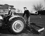 Lloyd and Coy West show here one of the things NOT to do in the interest of safety, in a posed picture. Coy, 11, rides a tractor-drawn shredder, endangering himself with the loss of legs if he slips or bounces off.