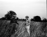 Floyd Davis, left, shows Somervell County Agent Doyle Cooper a good growth of Indian grass that has been developed through good range management on the Milam Ranch.