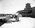 The opening of the Greater Fort Worth International Airport. An American Airlines plane labelled "Flagship Bristol" parked next to the terminal. The airport is also known as the Greater Southwest International Airport and Amon Carter Field.
