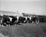 These steers, fed a variety of mixtures of cotton burs during an eight-month period, are of high quality, are fat and in good condition. Triplett used them as an experimental lot in trying different bur mixtures.