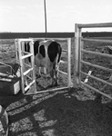Using more used pipe, Miller built a breeding crate for his cattle similar to those used in hog breeding, to eliminated handling of the bull. Bull pen gate at right opens to enclose the crate.