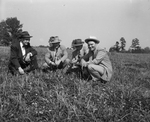 Charles Koontz, right, is showing a good improved pasture with three of the men who have helped him get a start. Left to right they are Clyde Greenway, Sears Foundation representative from Atlanta; Harry Koontz, father of Charles, and T. H. Mills, former vocational agriculture teacher at Welcome, North Carolina.
