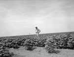 W. A. Bynum, stands in a field of irrigated knee-high cotton on his farm near Brownfield.