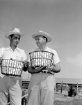 Richard Crow and Jimmie Wall holding baskets of eggs.