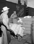 O. J. Gowan loads G. H. Dorsey's truck with feed at the city sales dock.