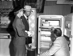 Mr. and Mrs. L. M. Cole, 4804 Calmont, show interest in a new refrigerator model demonstrated by Jack Brown.