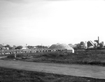 Ellis County cotton is piling up at the gins and compress and the seed is far in excess of storage space at the cottonseed oil mills. Shown are thousands of bales from the near-by compress and many tons of seed in mounds near Planters Cotton Oil Company mill at Ennis. Published in Fort Worth Star-Telegram morning edition November 22, 1953.
