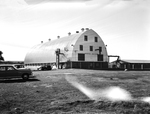 The photograph shows a $250,000 feed barn north of Palo Pinto, reported to be one of the most modern in the state. By pushbutton operations 100 tons of feed can be mixed a day. The barn is one of the ranch owned by M. H. McMurray of Tyler.