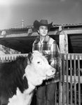 Ranch and Farm Magazine cover picture of Sue White. Ms. White is standing next to a cow.