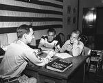 The war in Korea spurred these 17-year-old youths to enlist in the Air Force with their parents' written permission. left, Eddie Barnes, son of Mr. and Mrs. M. W. Barnes, 102 Colton, and Jim Donald, right, son of Mr. and Mrs. D. Donald, 333 N. Cherry, listen intently to Master Sgt. Walter J. Dolbee's instructions. Published in the Fort Worth Star-Telegram morning edition, July 08, 1950.