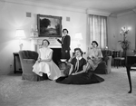 The young women, daughters of board members, will attend the local YMCA's May Day morning breakfast. Left to right are Mrs. W. R. Thompson III, Mrs. Kenneth W. Fuller, Miss Lou Baker, seated on floor, and Mrs. R. L. Farmer Jr. Published in Fort Worth Star-Telegram morning edition April, 1954.
