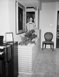 The picture shows how an indoor planter can be a decorative touch to a living room as seen in the new home of Mr. and Mrs. Scranton Jones, 3929 South Dr. Mrs. Jones stands in the opening that connects with the entry hall. Published in Fort Worth Star-Telegram morning edition April, 1954.