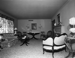 Th picture shows how odd pieces of period furniture from the 18th century fit into the 16 by 22 foot living room of the Roy Kline home, 4237 Ranier Ct. Carpet walls and drapes are in harmony while the dark furniture provides the color accent. Published in Fort Worth Star-Telegram morning edition April, 1954.