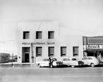 The photograph shows the First National Bank in Hockley County. Published in Fort Worth Star-Telegram morning edition June 3, 1954.