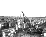 Pictured is a portion of the 100,000 bales of cotton raised in Hockley County in 1953, being loaded onto trucks for hauling to the Levelland compress. The cotton, all from irrigated land, is being shipped to Galveston. Published in Fort Worth Star-Telegram morning edition June 3, 1954.