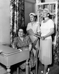 Mrs. E. E. Braznell, auditor, and Mrs. Claxton E. Lovin, treasurer, standing left and right, respectively, are going to have many conferences in the future with Mrs. Enoche E. Jones, seated, business manager of the club. Published in Fort Worth Star-Telegram morning edition June 13, 1954.