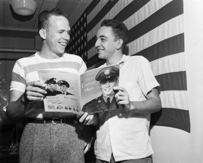 Ronald D. Knight, 20, left, and R. E. Bristow, 21, were first to enlist for military service here. They signed up for the Air Force. Published in the Fort Worth Star-Telegram morning edition, July 08, 1950.
