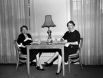 Mrs. E. H. Martin, right, recording secretary, and Mrs. Stuckert Owens, appointed member of the executive committee, are pictured in Waples Hall, the club dining room. Published in Fort Worth Star-Telegram morning edition June 13, 1954.