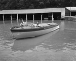 This is the new city-owned lake patrol boat that City Council purchased from Gunter's Boat Works. W. C. Gunter is at the wheel. The boat will be used by the park department to check boats for licenses and to help see that lake safety precautions are observed. Published in the Fort Worth Star-Telegram morning edition, July 09, 1950.