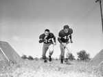 Tackles James Famer, 211, left, and Ronald Freiley, 204, of North Side will go against Sweetwater at Farrington Field. Published in Fort Worth Star-Telegram evening edition September 17, 1954.