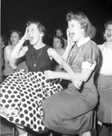 Dallas teenage girls (both 16), Georgiana Blaylock (left) and Dolores Orms at Elvis Presley concert, Fort Worth's North Side Coliseum, April 1956
