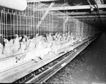 Homer McCasland Poultry Farm. Hens laying in cages. Texas Farm and Ranch photo.