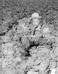 Olliie Liner, Hale Co., agent with cabbage. He can be seen camoflauging within a cabbage plantation.
