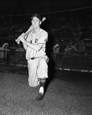 Bob Lemon, Indian outfielder who is pressing toward a new Texas League home run record, awaits his turn at batting practice. He led Tribe to victory. Published in Fort Worth Star-Telegram morning edition July 9, 1950.