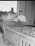 Farmer Roland Tullis, left of Hale Center, unloads cucumbers at mechanical grader as a few culls are picked out by Arno Struve of Abernathy.