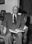 Image shows Dr. Jesse Lawrence Ward seated in his home with a book in lap. He retired in June as active president of Decatur Baptist College, from 1900 to 1907 and then from 1914 to retirement but has stayed on as president emeritus and work on endowments. He has never earned a degree but was given two honorary degrees: Master of Arts from Baylor and Doctor of Divinity from Hardin-Simmons. Dr. Ward was remarried in 1914. He has one daughter, Mrs. Ruth Reed of New Orleans, by his first wife and another, Mrs. Elizabeth Ann Kincaid, by his second wife.