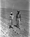 Pecos Experiment Station. Farm and Ranch. Farm Foreman Amos Wilson, left, and Ernest L. Thaxton discuss layout of the new Trans-Pecos Experiment Station, Soils and Crops Unit, which will delve into ways of cutting cotton production costs in the Pecos Valley.