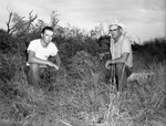 Fred Reeves, right, foreman of the Wayne Ray Ranch, west of Archer City, and his son, Kenneth, examine regrowth of mesquite trees that were controlled by bulldozing.