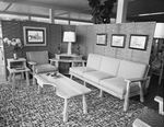 Special furniture section. Sturdy oak goes into this living room suite which may be matched in dinning room, family room and bedroom furniture. Housekeepers appreciate it especially for its durability and its resistance to the activities of small children.