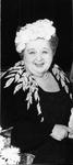 Edna Gladney, wearing flowered hat with veil and pearl necklace, ca. 1959.