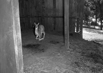 Photograph of a kneeling baby guanaco. Published in Fort Worth Star-Telegram morning edition July 10, 1950.