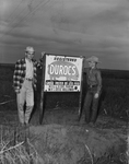 Texas Ranch and Farm Magazine. Jesse Holloway, and Hale Co. Assistant agent B. F. Yeates stand by sign at entrance to Hillside Farm.