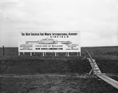 A picture a the "New Greater Fort Worth International Airport" under construction sign.