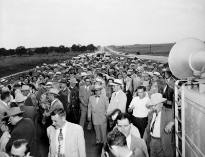 A picture of the crowd that jammed one side of Highway 183 to witness the dedication of Greater Fort Worth Interantional Airport.