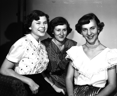 Three Fort Worth members of La Vivarachas of Texas Technological College will attend a reunion of the club at Wiley's Dude Ranch near Grapevine. Left to right, Misses Pat Edwards, 3240 Waits Ave., Beth Gregory, 2708 College Ave., both active members, and Jane Duncan, 4005 Medford Rd., an alumna member. Published in the Fort Worth Star-Telegram morning edition, July 14, 1950.