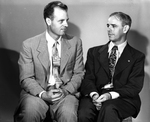 Conde Morris, left, and Al Alleman have mutual gardening interests. Alleman of Baton Rouge is director of the national group Men's Garden Clubs of America and founding president of his local club. Helping Alleman to get acquainted with men garden clubs here was Conde Morris, president of the Fort Worth Men's Garden Club. Alleman presented charters to clubs at Denton and Dallas, two clubs jointly sponsored by the Fort Worth and Baton Rouge groups. Published in the Fort Worth Star-Telegram morning edition, July 16, 1950.