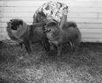These 7-month old cows, right, Chang Fu Chan, a red, and Chan Blue Boi, a blue, are two of the puppies that will compete in the Fort Worth Kennel Club's free all-breed puppy show in Trinity Park. They are owned by Mrs. Hardy Hawkins, 2310 Dell. Published in Fort Worth Star-Telegram, morning edition July 16, 1950.