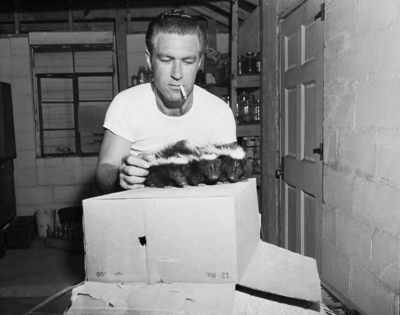 Tommy Thorp is shown with skunks. Published in Fort Worth Star-Telegram, evening edition July 14 1950.